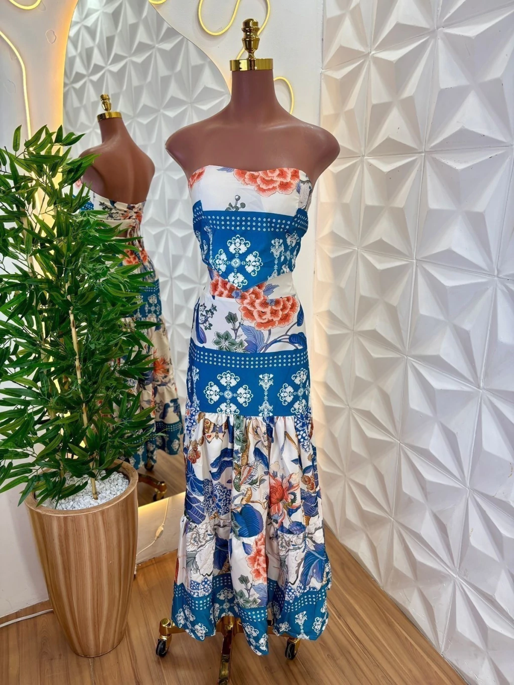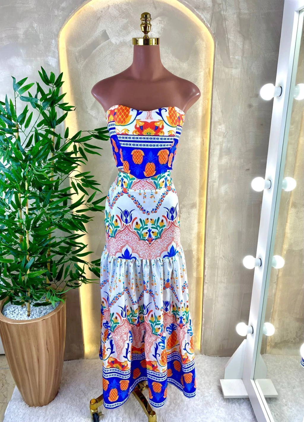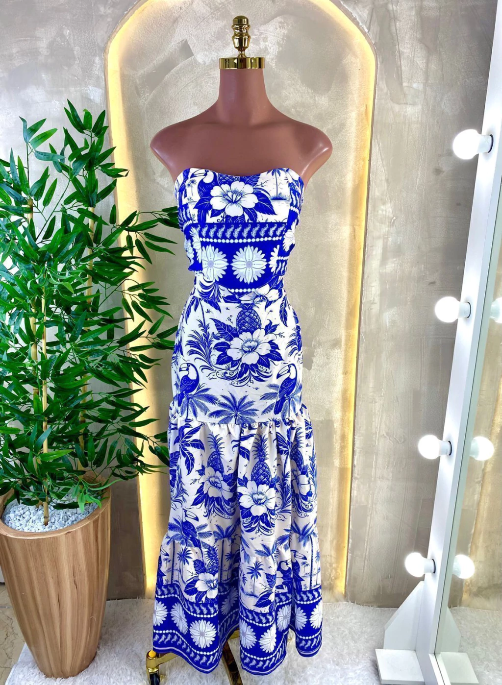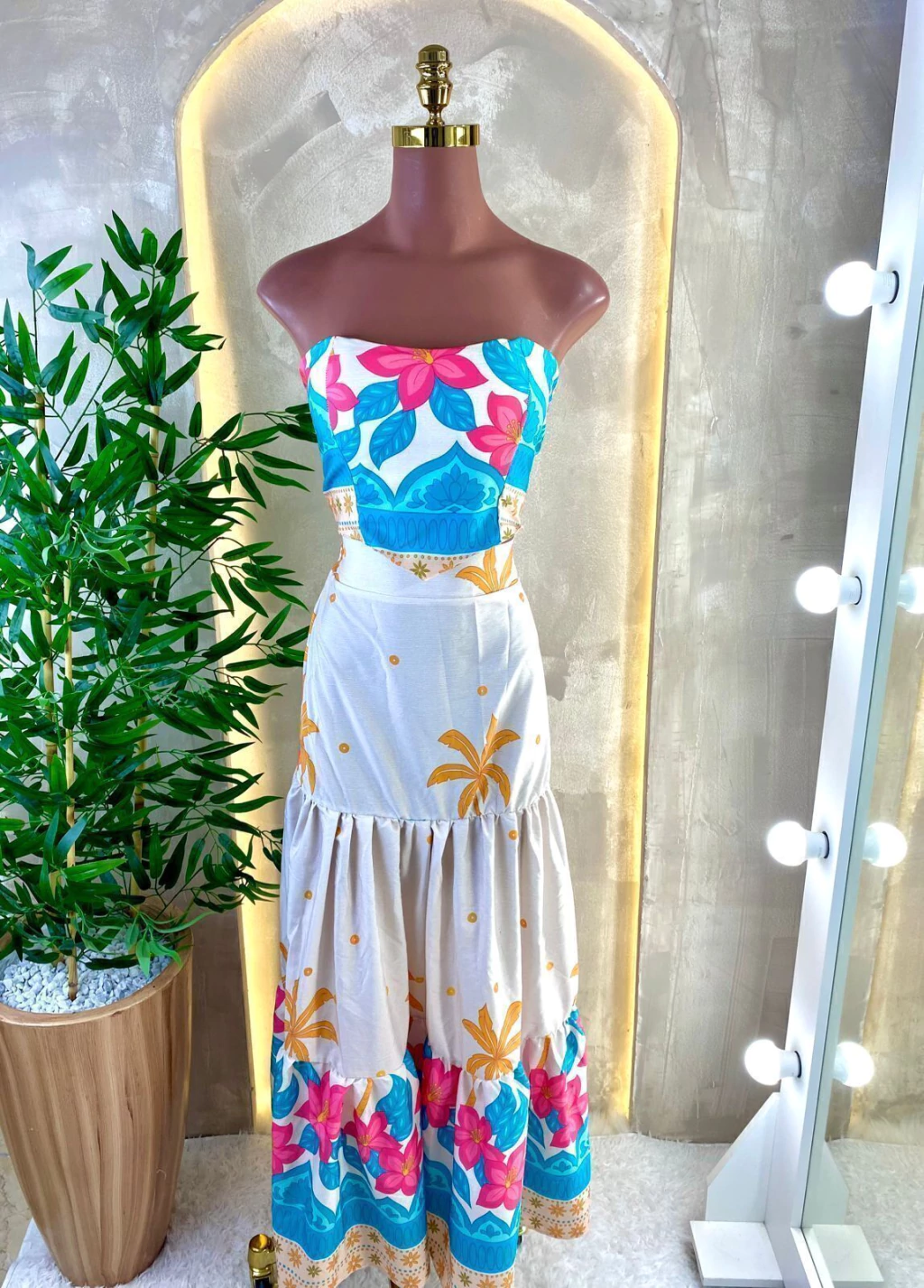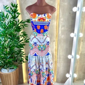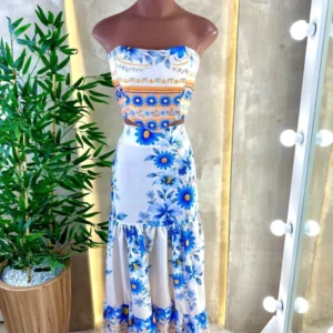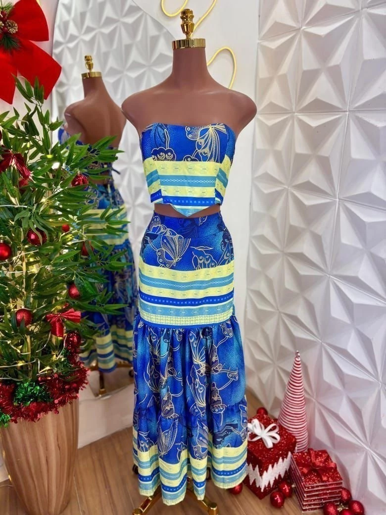 Acompanha saia longa em camadas com caimento fluido, proporcionando elegância e conforto. Veste até o tamanho 40.