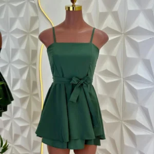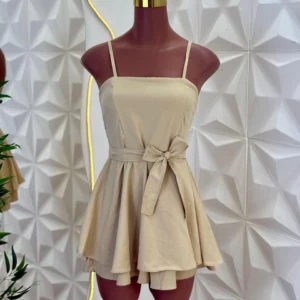 Essa macaquinha é a escolha perfeita para quem ama praticidade sem abrir mão da elegância. Com alcinhas finas e decote reto, ela valoriza o colo de um jeito delicado.