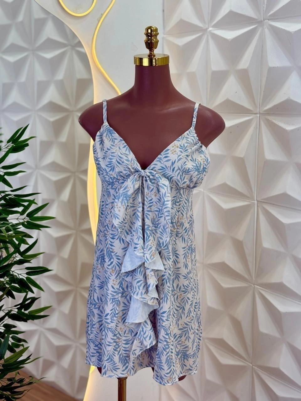 Vestido curto com modelagem leve e fluida, perfeito para quem ama movimento e frescor. Possui decote em V com detalhe frontal que valoriza o busto. O charme do vestido fica por conta do detalhe frontal em babado, que cai suavemente como se formasse um laço delicado. Esse acabamento traz movimento, leveza e um toque romântico… Nas costas, o lastex garante conforto e ajuste perfeito ao corpo. Uma peça charmosa e versátil.